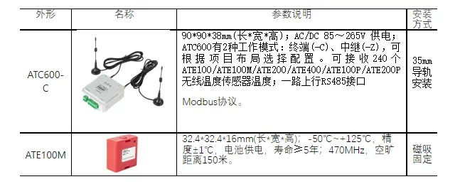 根據(jù)上述要求,故此選擇安科瑞的無線測溫產(chǎn)品如下表。